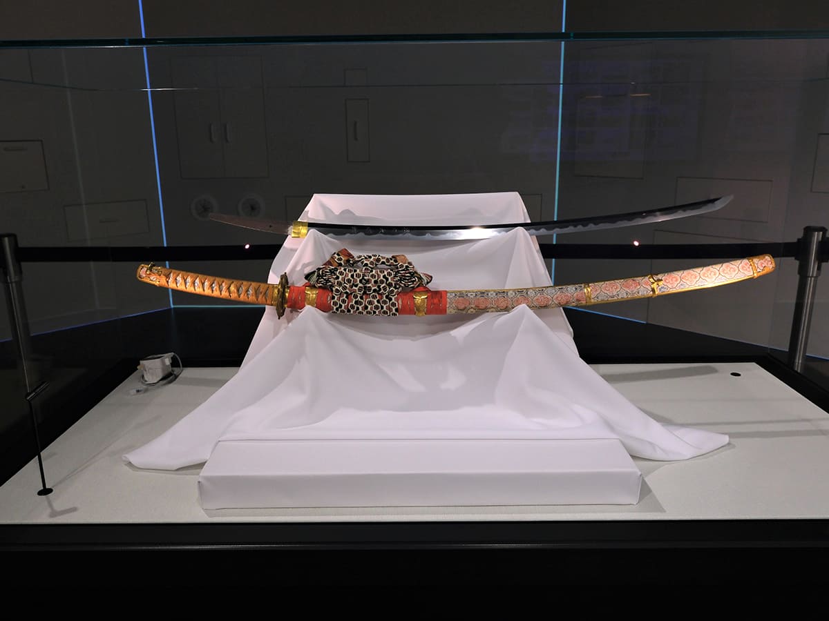 桑名市にある「桑名宗社」が所有する宝刀「村正」。「村正」は、室町時代から江戸中期まで代々日本刀を作り続けた刀工とその作品の名称で、美術品としても高く評価されています。桑名宗社に奉納された、春日大明神と三崎大明神の二振りの「村正」は、第二次世界大戦時に、刀身を守るために漆が塗られ、その状態で保管されていました。今回は、そのうちの一振り(春日大明神)が、万博会場で漆を外した状態で公開されます。