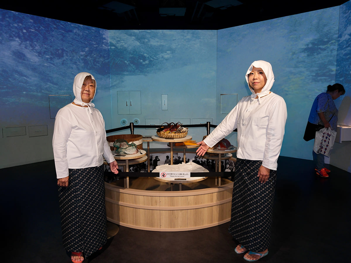 2000年以上の歴史をもつ伝統的な漁法である海女漁。三重県には日本でもっとも多く海女が存在し、その独自の営みは国内外から注目されています。会場では、海女漁のダイナミックな映像を楽しめると同時に、現役海女が来場し、海のこと、海女漁について語ります。合わせて「桑名のはまぐり」や「松阪牛」「南紀みかん」など食の宝庫・三重を代表する食材についても映像で紹介します。
